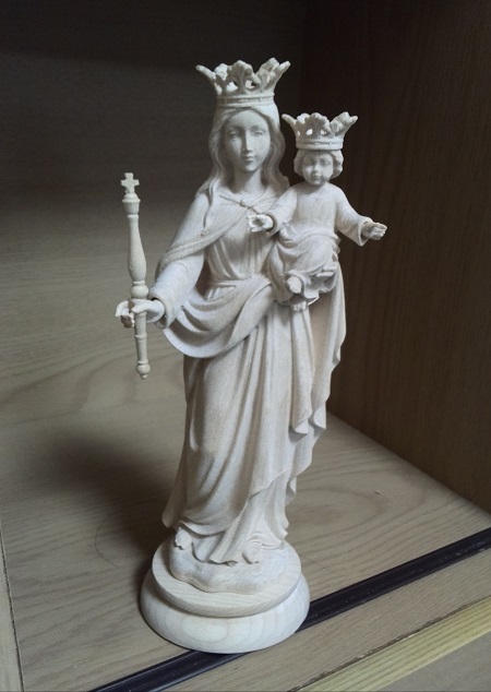 これはベッドのうえにあった木彫りのマリア様です。ものすごく精巧でついガン見。